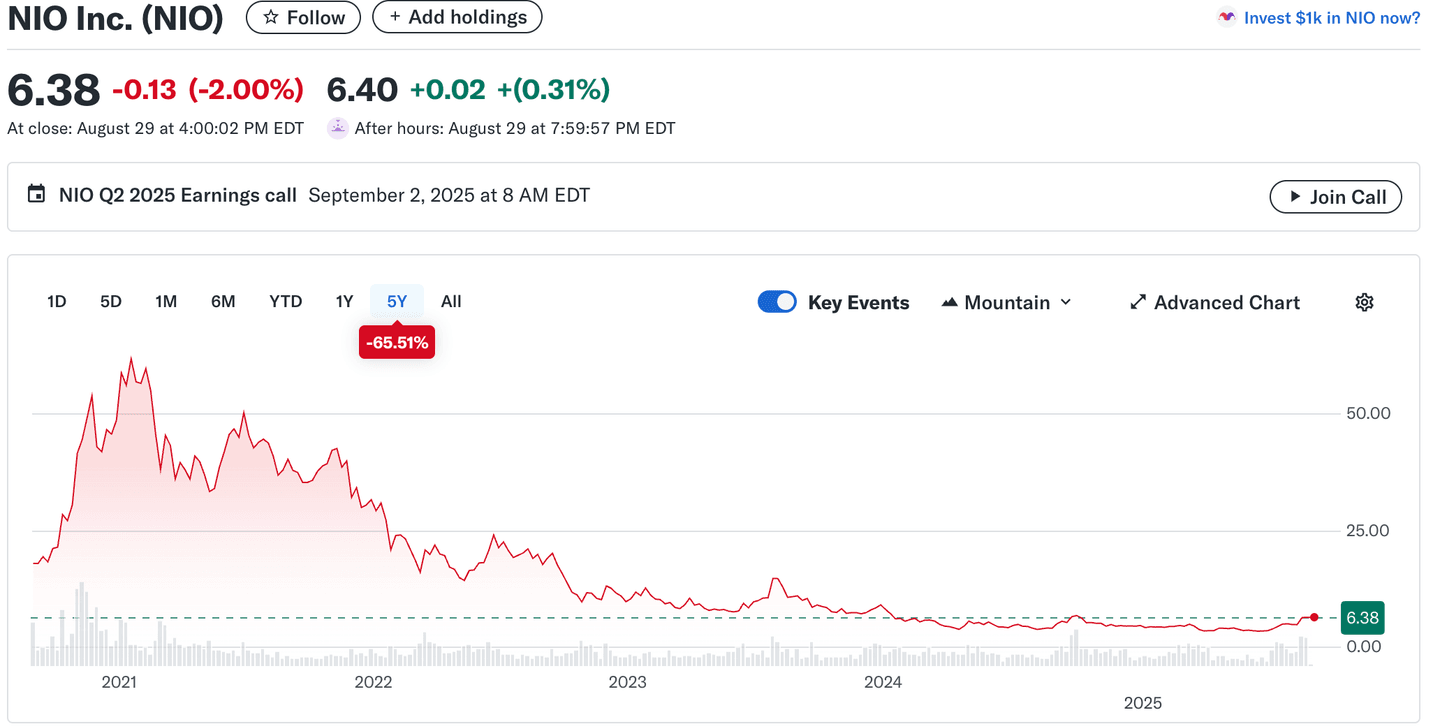 Po vstupu na burzu v roce 2018 zaznamenaly Nio akcie obrovský růst, zejména v roce 2020, kdy vzrostly z přibližně 4 USD na více než 60 USD. Hlavním důvodem byl optimismus kolem elektromobilového sektoru, vládní podpora v Číně a rostoucí poptávka po elektrických vozidlech.