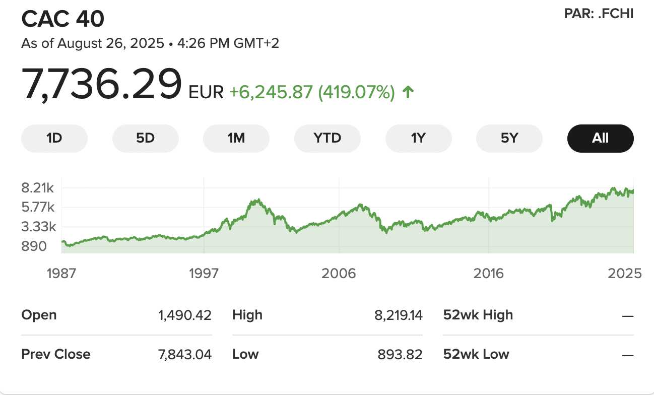 Hlavní burzovní indexy Francie