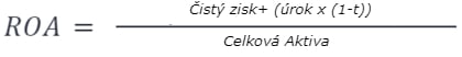 Již máme potřebné údaje pro výpočet ROA, k tomu nahradíme hodnoty ve vzorci:
