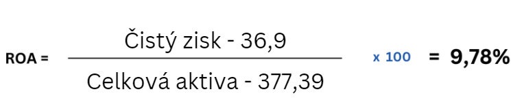 Již máme potřebné údaje pro výpočet ROA, k tomu nahradíme hodnoty ve vzorci: