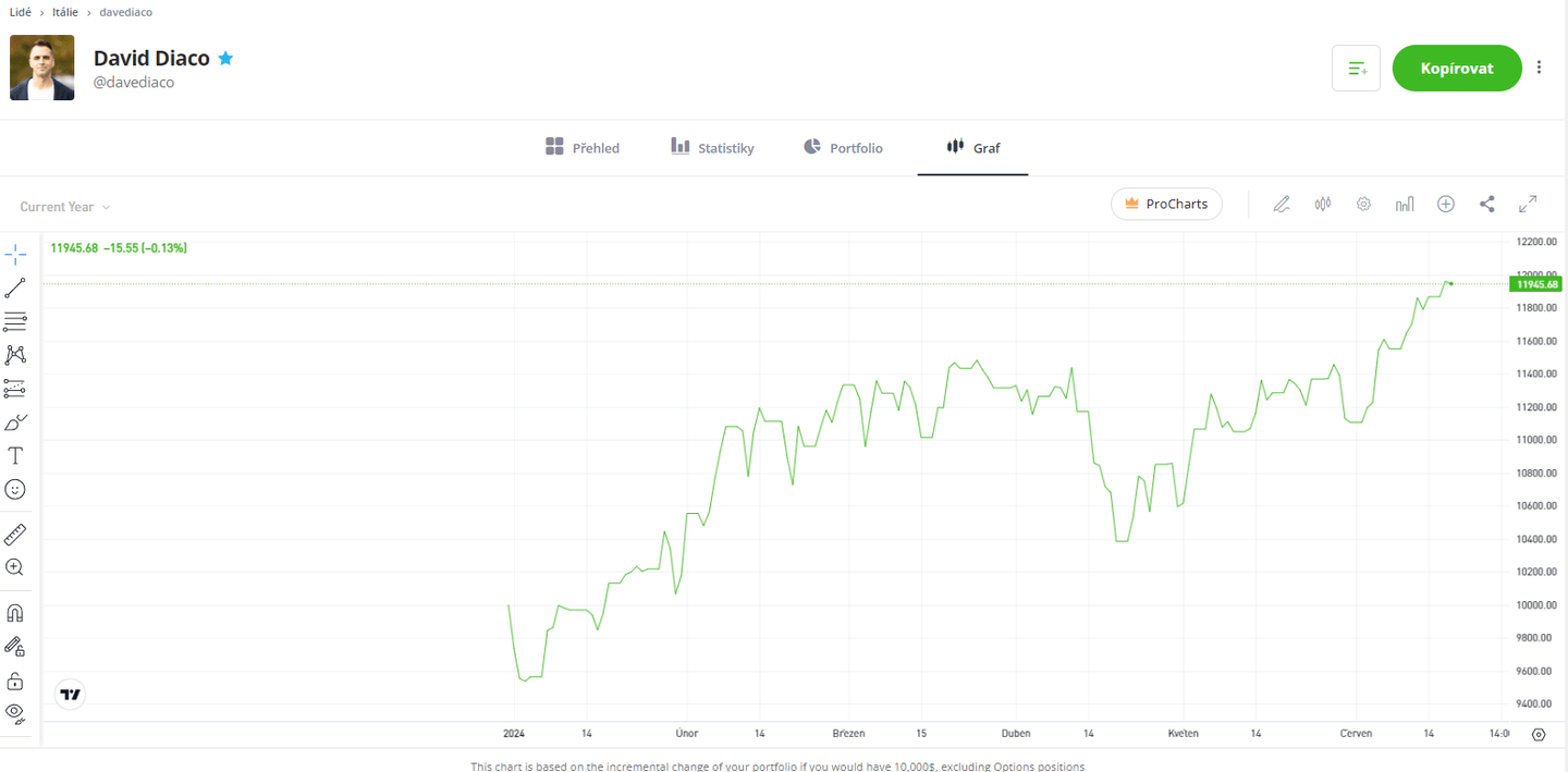 V mém případě, vstoupíme do profilu Davida Diaco, v kategorii nejkonzistnější investoři, a když se podíváme na jeho statistiky můžeme vidět: