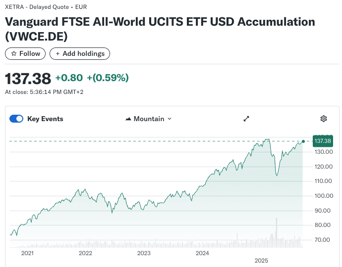 Světové ETF Vanguard FTSE All-World (IE00B3RBWM25)