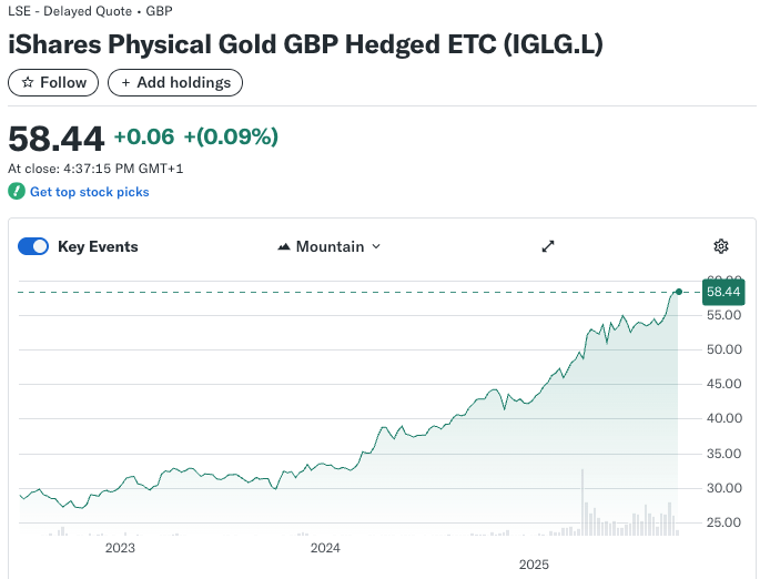 | iShares Physical Gold GBP Hedged | 0,25 % | 46.14 % | 17,51 % | IGLG | IE000Q2P3ZQ3 | GBP (zajištěno) |