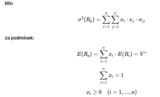 Sada efektivních portfolií může být vypočítána řešením následujícího parametrického kvadratického programu: