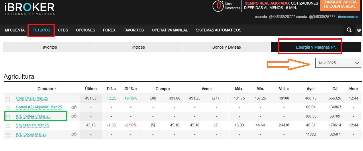 Jak jsme již viděli, nejpřímější, ale také nejrizikovější způsob expozice je nákup kávových futures. Ale jak se to dělá?, A především, jak fungují tyto nástroje? Abychom na tyto otázky odpověděli, využijeme španělského brokera, regulovaného CNMV, iBroker.