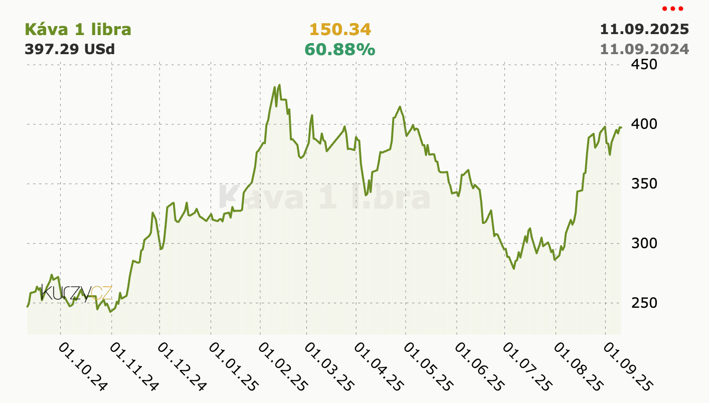 Tradičně platilo, že pokud cena kávy překročila 250 USD za pytel, byl to drahý obchod. Od konce loňského roku a začátku roku 2025 však tento vzácný komoditní produkt dosahuje ceny kolem 400 USD za pytel.
