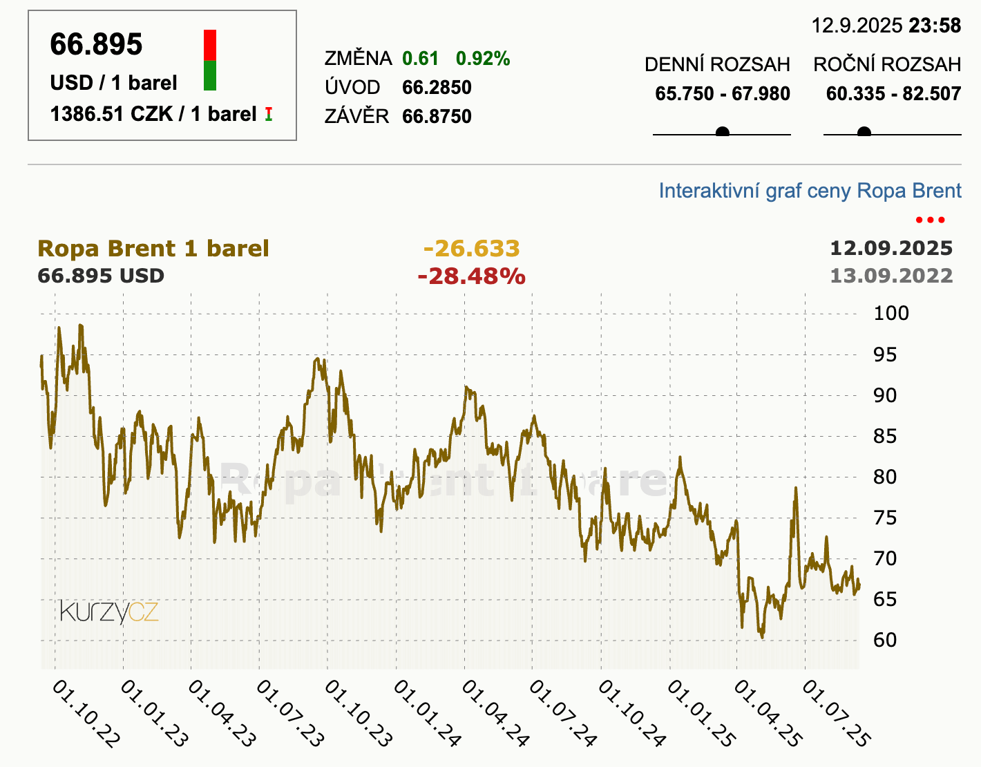 Cena ropy se tedy mění v závislosti na nabídce a poptávce, geopolitické situaci producentských zemí, na druhu ropy a dalších faktorech.