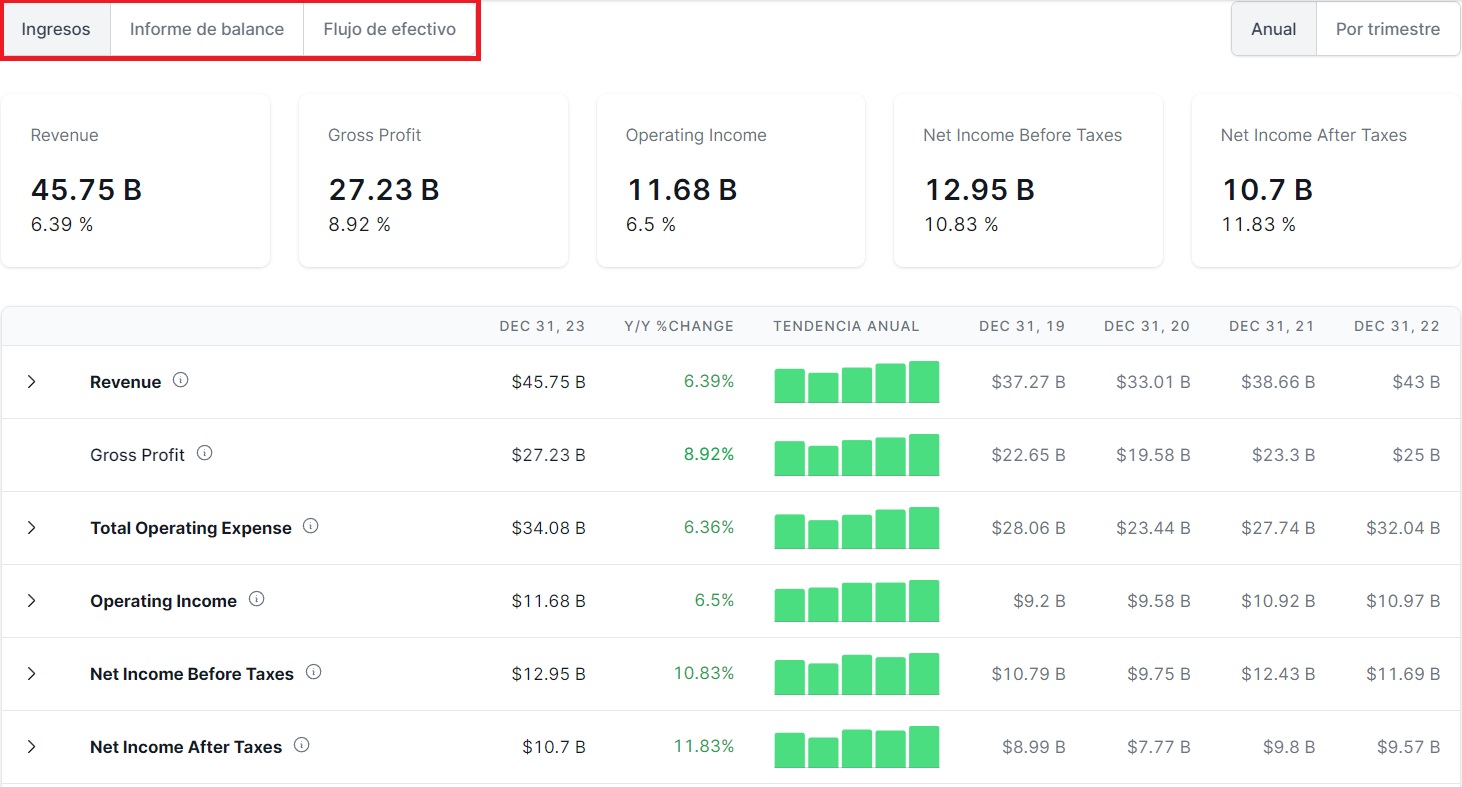 Naštěstí, u brokerů jako Freedom24, můžeme analyzovat společnost z jejích finančních výkazů, jako je například výkaz zisků a ztrát.