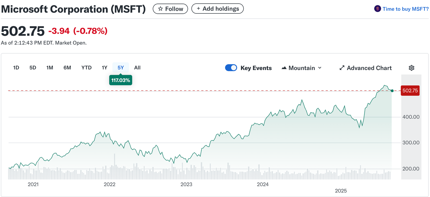 Analytici zůstávají nadále velmi pozitivní – v září 2025 akcii MSFT pokrývá 56 analytiků, z toho 12 doporučuje „Strong Buy“ a dalších 43 hodnotí jako „Buy“. Výrazné je také to, že již několik měsíců v řadě se neobjevila žádná doporučení k prodeji. To naznačuje vysokou důvěru investorů v dlouhodobý růstový potenciál Microsoftu, ať už v oblasti cloudu (Azure), produktivity (Microsoft 365) nebo AI (např. prostřednictvím investice do OpenAI). Microsoft tak i nadále patří mezi nejstabilnější a nejvýnosnější technologické tituly na trhu.