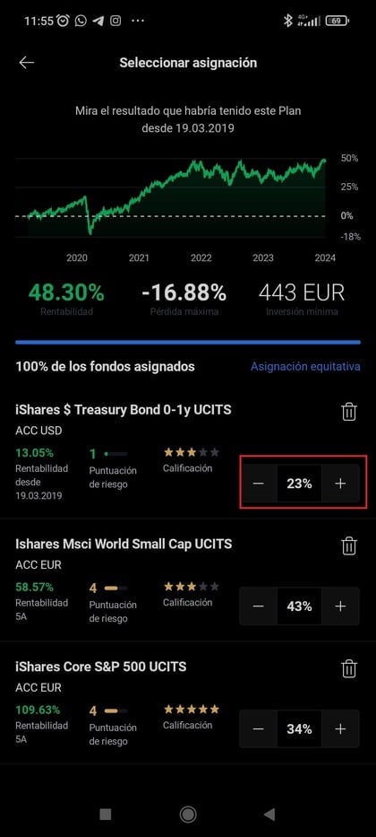 Můžete vytvořit až 10 Investičních plánů současně (všechny zdarma do 100 000 eur měsíčně) a každý z nich může obsahovat až 9 různých ETF.