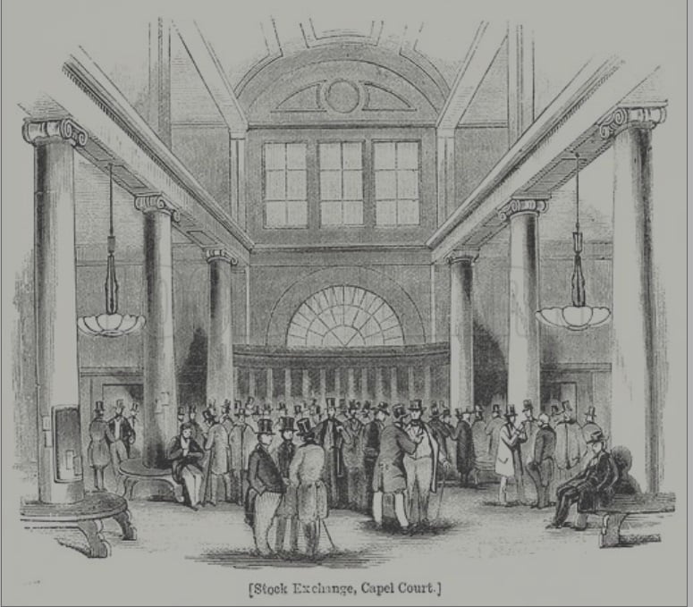 Její počátky sahají až k setkáním a schůzkám obchodníků v Londýně ve středověku. V 17. století se tito obchodníci scházeli, aby obchodovali s akciemi a dluhopisy, a tato setkání, na nichž se obchodovalo s cennými papíry, byla počátkem burzy.