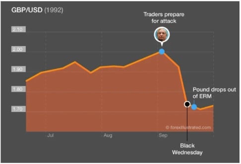 - George Soros a černá středa: V roce 1992 se odehrála takzvaná „černá středa“. Sterling byl nucen opustit Evropský mechanismus směnných kurzů poté, co nebyl schopen udržet dohodnutý směnný kurz. Tato událost měla za následek velké ztráty pro mnoho investorů.