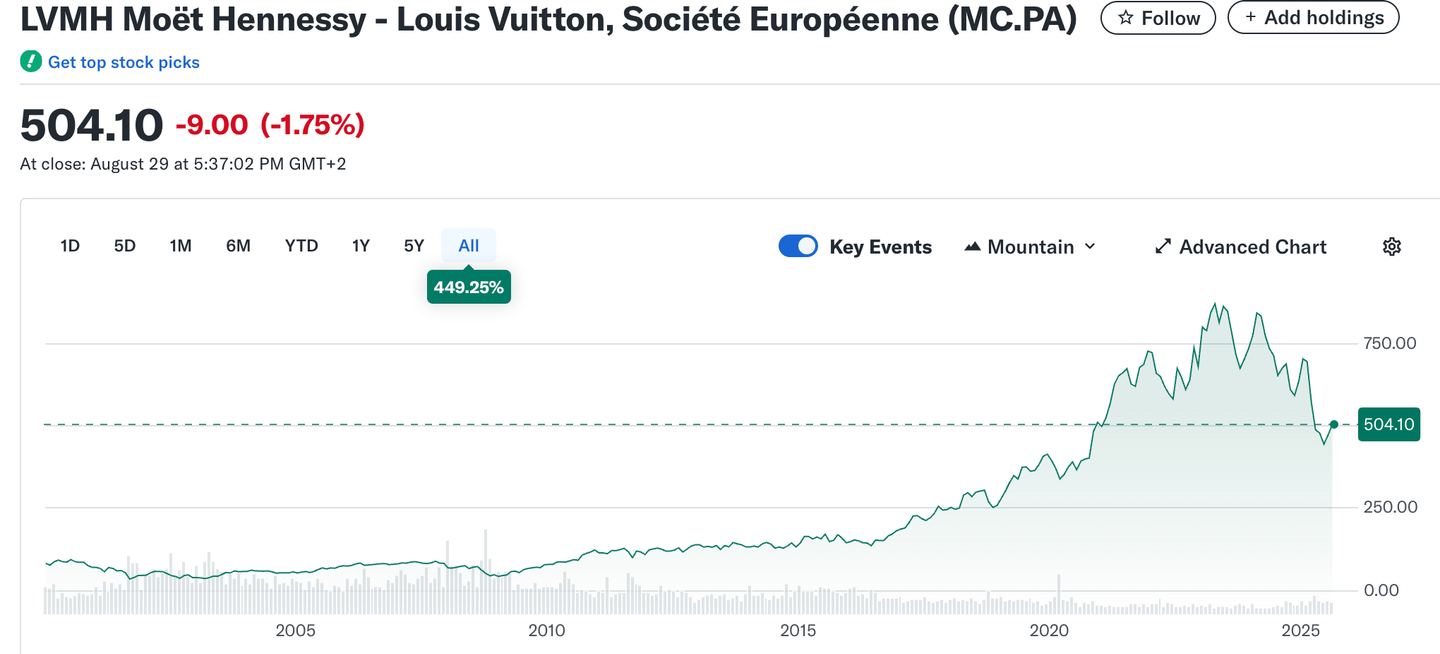 | 📈 Silné značky a loajalita zákazníků – luxusní společnosti mají vysoké marže a pevnou zákaznickou základnu. | ⚠️ Změny trendů – nové generace spotřebitelů mohou preferovat jiné značky a produkty (důraz na udržitelnost). |