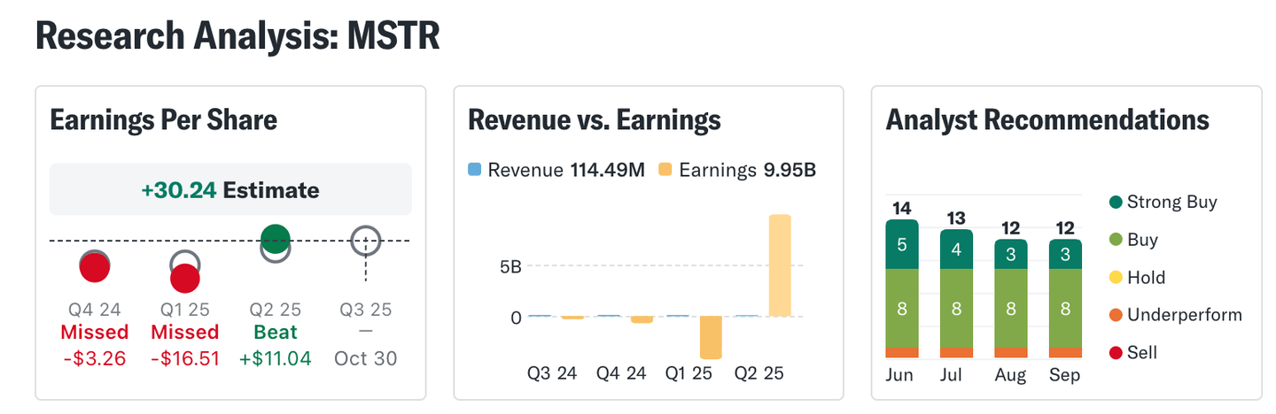 A dobře, zdá se, že to na společnost nemá vliv, protože navzdory její špatné finanční situaci, možná díky módě kolem ní kvůli „udržování rezerv v Bitcoinu“, názory analytiků Yahoo Finance jsou obecně pozitivní, doporučují její nákup, dokonce i agresivní nákup. A to zejména v těchto dnech, kdy Bitcoin opět překračuje 100 000 USD.