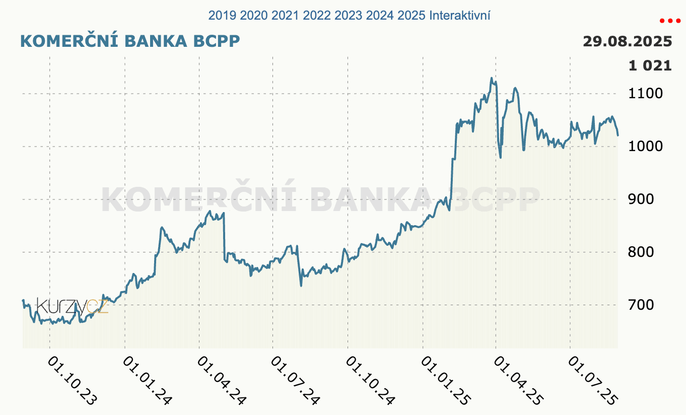 Celkové výnosy Komerční banky dosáhly za první čtvrtletí roku 2025 9,1 miliardy Kč, což představuje meziroční nárůst o 3,5 %. Provozní náklady naopak poklesly na 4,6 miliardy Kč, tedy o 4,4 % méně než před rokem, zejména díky úsporným opatřením a digitalizaci procesů. Skupina Komerční banky obsluhovala k začátku roku 2025 celkem 2 177 000 zákazníků.