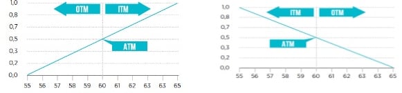 Zkratky na grafu znamenají: „In the Money“, „Out of the Money“ a „At the Money“