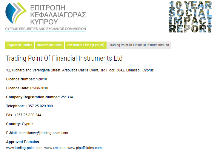 Kromě toho je XM vlastněna a provozována Trading Point of Financial Instruments Ltd, brokerem regulovaným CySEC a registrovaným v Evropské unii. XM poskytuje služby na stejné úrovni a podle stejné obchodní politiky jako Trading Point, avšak také zavádí nové produkty, které nabízejí vysokou efektivitu obchodování pro své klienty.
