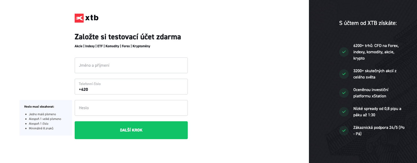Kroky k otevření účtu XTB: