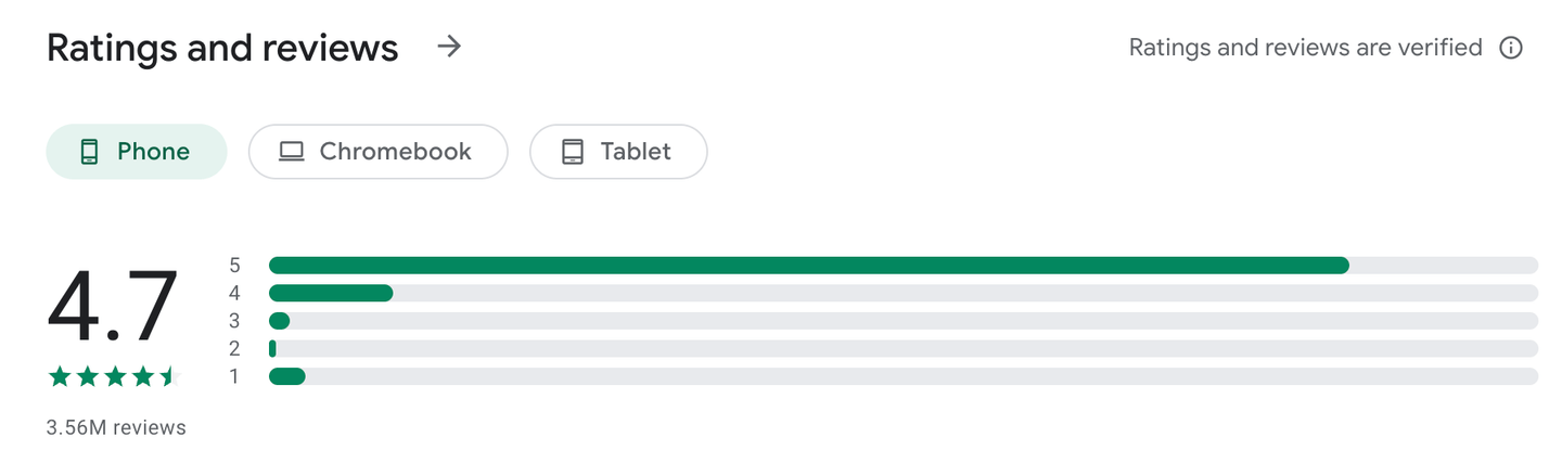 Aplikace Revolut si v obchodě Google Play drží velmi dobré hodnocení 4,7 z 5 hvězdiček, což odráží spokojenost většiny uživatelů s jejím fungováním a rozsahem funkcí.