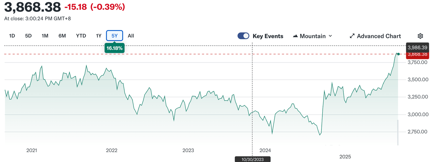 Už na podzim 2024 zažil index jedno z nejprudších oživení za poslední dvě dekády, kdy během několika týdnů vzrostl téměř o 30 %. Tento pozitivní trend se přelil i do roku 2025 a pomohl Shanghai Composite alespoň částečně smazat ztrátu oproti západním indexům.