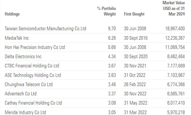 Fond JPMorgan Funds - Taiwan Fund A (acc) od amerického správce usiluje o dlouhodobý růst kapitálu investováním převážně do tchajwanských cenných papírů.