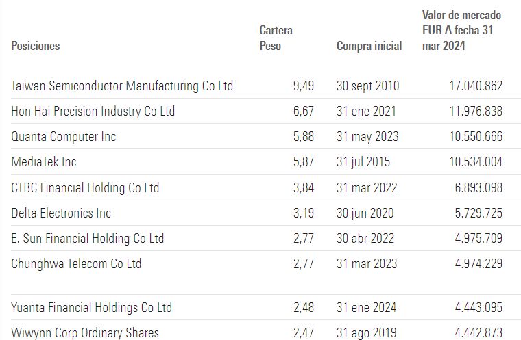 | Allianz Global Investors Taiwan Intelligence Trends Fund | TW000T3619Y1 | 4 % | 51,90 % | 17,13 % | - |