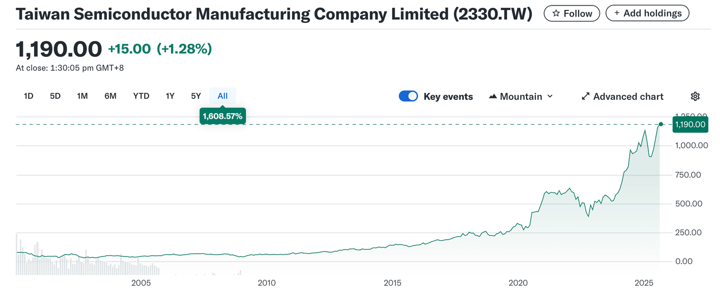 K dnešnímu dni je Tchaj-wan jednou z nejvýznamnějších mocností v odvětví polovodičů (které někteří již nazývají „ropou této éry“), což mu umožňuje hrát klíčovou roli v globální ekonomice a geopolitice a jeho hlavním představitelem je společnost TSMC (Taiwan Semiconductor Manufacturing Company). Drobná vsuvka která nesouvisí s Tchaj-wanem ale s polovodičovým průmyslem. Na Rankia jsme psali, jak investovat do akcií NVIDIA, která není přímí konkurent TSMC, ale působí ve stejném segmentu.