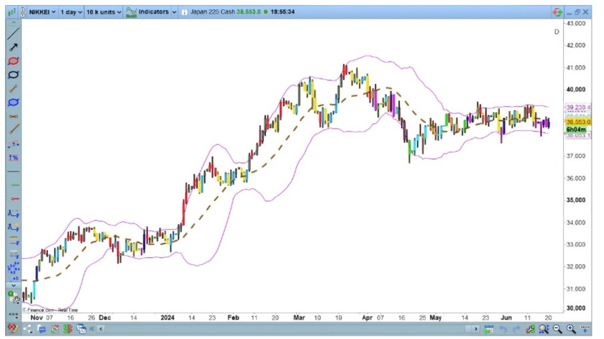 Jedná se o indikátor ve formě pásem, které obklopují graf, který vyvinul John Bollinger, který je dnes obchodním standardem.